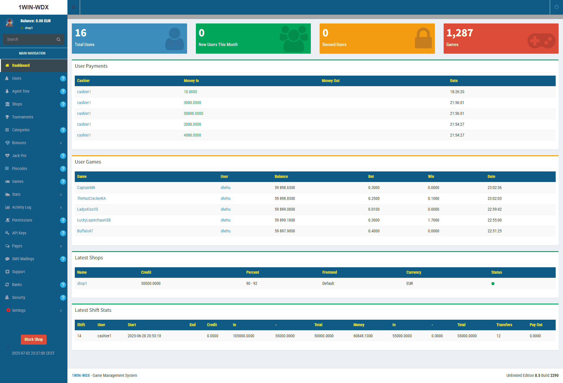 - 3. Yes, you can control all games on the admin panel.