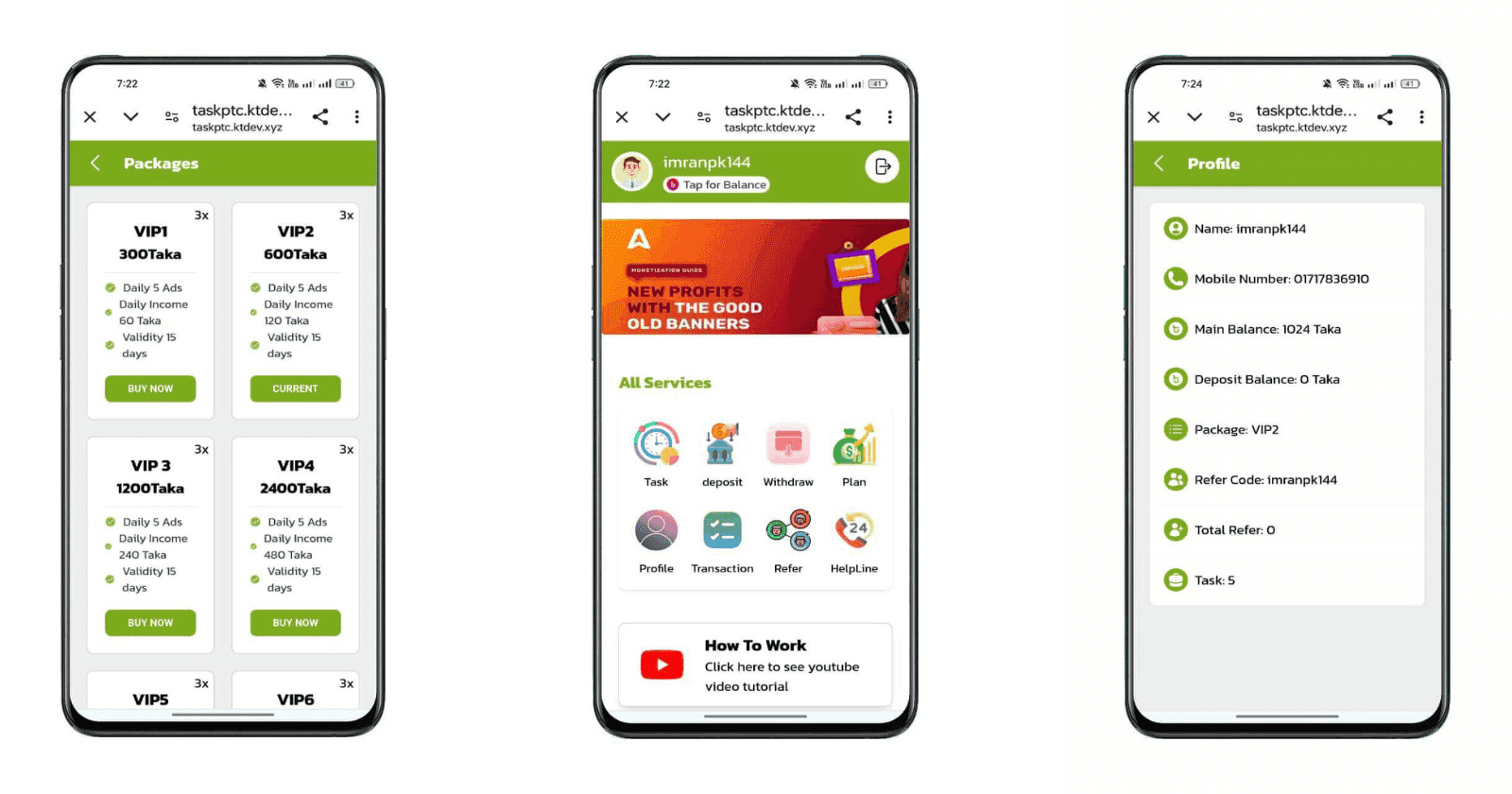 Users enjoy a clean and responsive dashboard where they can track task history, investment profits, referral bonuses, and wallet transactions. Additionally, the referral system encourages organic growth by rewarding users for inviting others to the platform.